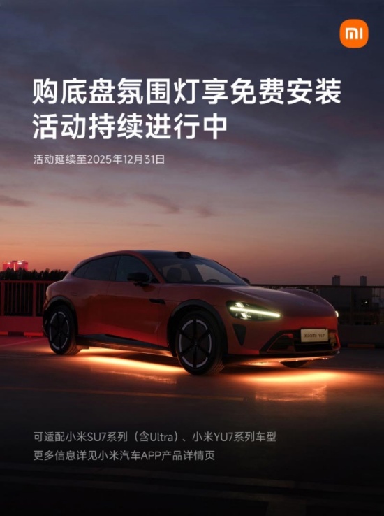 10月31日,小米汽車宣布,其底盤氛圍燈免費(fèi)安裝服務(wù)將延續(xù)至12月31日。SU7(含Ultra)/YU7系列用戶可在小米汽車App商城選購,售價(jià)為999元。小米智能底盤氛圍燈支持8種特調(diào)顏色和2種燈光效果,與YU7原廠車漆同色系匹配,并支持小米澎湃智聯(lián),通過車內(nèi)WiFi接入小米汽車車機(jī)系統(tǒng)和米家App。