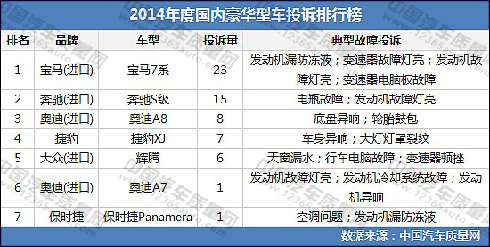2014年度國(guó)內(nèi)豪華型車投訴排行榜