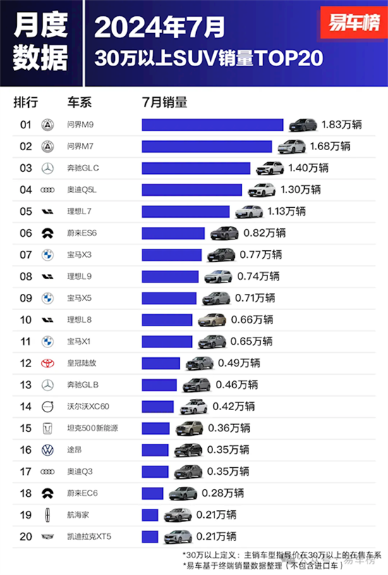 7月份30萬(wàn)以上SUV銷量前20出爐