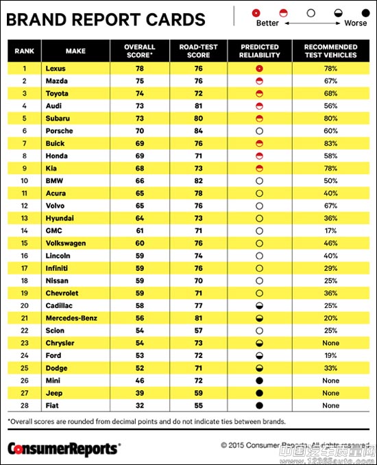 在車(chē)型的綜合評(píng)測(cè)中,我們經(jīng)常會(huì)發(fā)現(xiàn)一個(gè)現(xiàn)象,可靠性高的車(chē)型有時(shí)候在性能表現(xiàn)上卻不盡如人意,而一些路測(cè)表現(xiàn)較好的車(chē)型卻在可靠性表現(xiàn)上跌了跟頭。為了給車(chē)主推薦一些綜合表現(xiàn)出色的汽車(chē)品牌,美國(guó)著名雜志《消費(fèi)者報(bào)告》最新通過(guò)可靠性和性能這兩項(xiàng)...