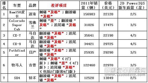 中國汽車質(zhì)量網(wǎng)從海外獲悉,美國著名的投資網(wǎng)站24/7 Wall Street近日發(fā)布了一項“美國最危險的七款車”汽車排名,車型分別為道奇Ram1500皮卡、雪佛蘭Colorado Super Cab、馬自達CX-7、馬自達CX-9、日產(chǎn)Pathfinder、吉普牧馬人以及鈴木SX4。在IIHS開展的...