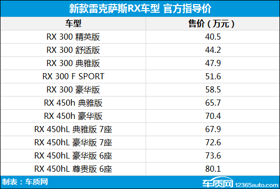 新款雷克薩斯RX正式上市 售40.50-80.10萬元
