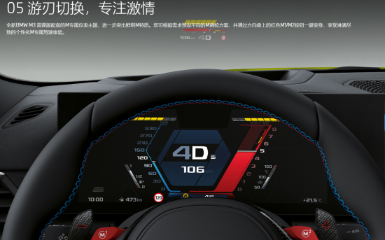 內(nèi)飾部分是此次改款的一大看點(diǎn),據(jù)悉,新款寶馬M3換裝了家族最新的曲面雙聯(lián)屏,并內(nèi)置iDrive 8車(chē)機(jī)交互系統(tǒng),科技感大幅提升。另外,車(chē)輛的儀表內(nèi)部還提供了M專(zhuān)屬儀表主題,進(jìn)一步突出M特質(zhì),您可以通過(guò)方向盤(pán)上的紅色M1/M2按鈕實(shí)現(xiàn)一鍵切換,享受寶馬M帶來(lái)的專(zhuān)屬樂(lè)趣。
